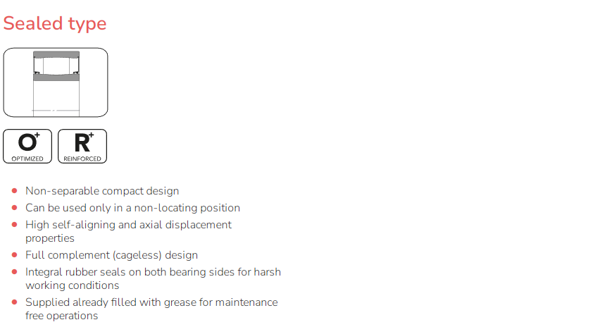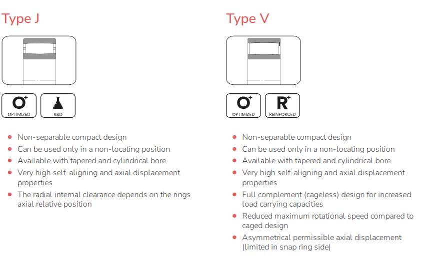 BUT toroidal roller bearings (TORB) are single row pure radial roller bearings featuring slim symmetrical barrel rollers, which are properly profiled to give uniform stress distribution and proper roller/raceway contact. These properties keep at bay rolling friction and working temperature. Consequently, the lube film gap remains stable and the lubricant ageing process is slowed down, improving the application reliability. BUT toroidal roller bearings are conceived to be mounted as non-locating bearings, since they can face the thermal expansion along the shaft.
